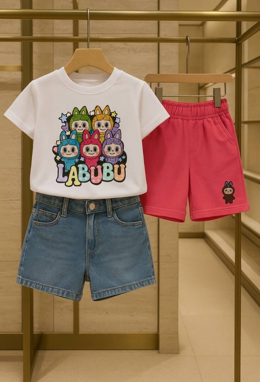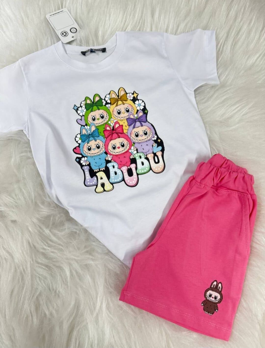 LABUBU PEMBE ŞORTLU YAZLIK İKİLİ TAKIM çocuklar için özel tasarlanmıştır.