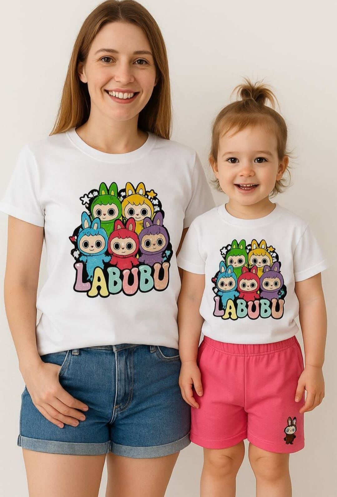 LABUBU PEMBE ŞORTLU YAZLIK İKİLİ TAKIM (ANNE KIZ KOMBİNİ YAPILABİLİR )