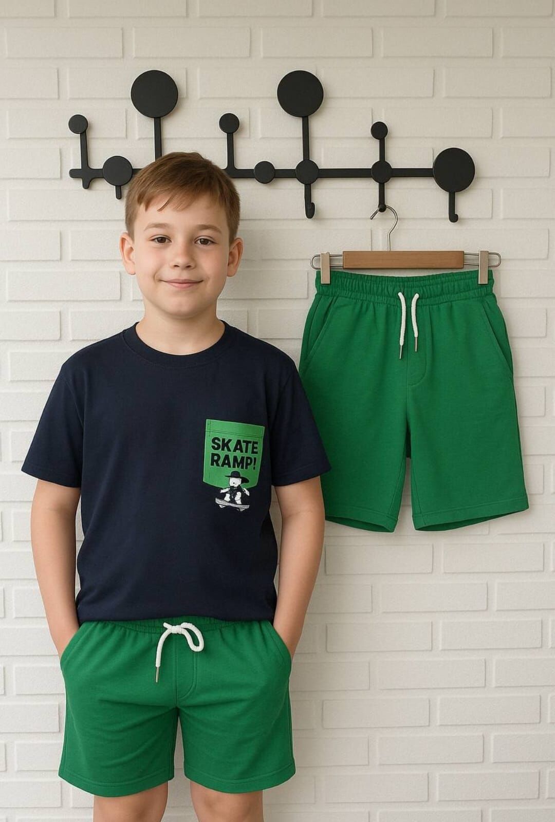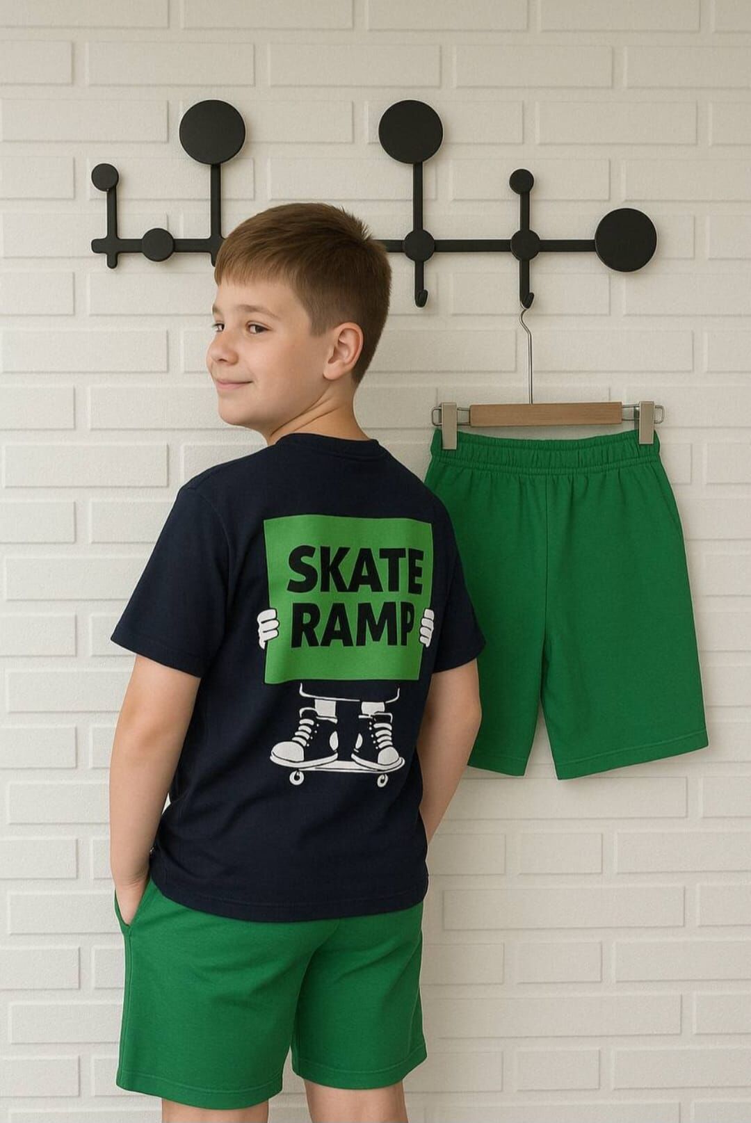 SKATE RAMP BASKILI YAZLIK İKİLİ TAKIM çocuklar için özel tasarlanmıştır.